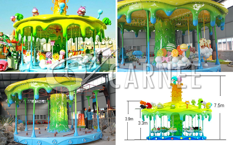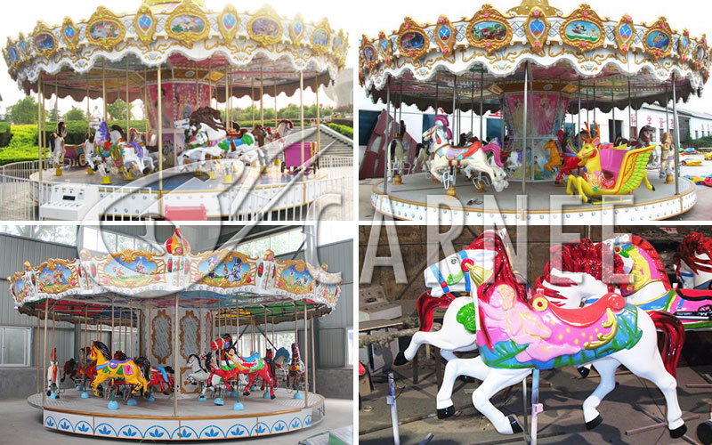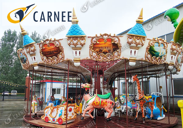 How much do you know about carousels? The carousel (also known as the Merry Go Round) is an amusement ride consisting of a rotating circular platform that provides seating for passengers. The seats are traditionally mounted on columns in rows of horses or other animals. For most sold carousels, seats can be simulated by the gearbox moving up and down, accompanied by ring-shaped circus music. In this way, with the unique and innovative deisgn, the carousel from Carnee is very attractive! In particular, children and adults like to ride on the carousel. You will never regret buying carousels from Carnee Rides.