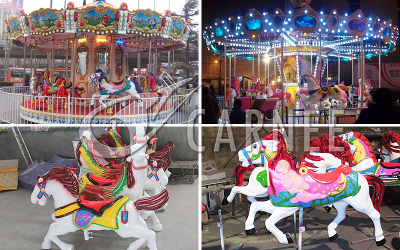 Carousel ride also named merry go round. It is a popular amusement equipment, always be seen in amusement park, square, kindergarten and many other places. We zhengzhou Carnee is a professional carousel manufacture, has many different kinds of carousel. The carousel has various of theme, welcomed by kids and adults for the lovely surface and colorful lights. The customer will have a lot of fun while riding on it with the horse swing and turn, go up and down!